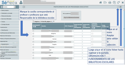 Séneca/Centro/Organización y funcionamiento de las bibliotecas escolares/Participantes/Seleccionar año académico (2019– 2020)/Seleccionar Sector