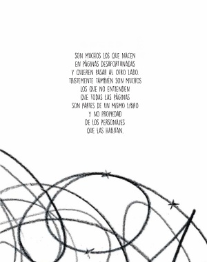 son muchos los que nacen en páginas desafortunadas y quieren pasar al otro lado. tristemente también son muchos los que no entienden que todas las páginas son partes de un mismo libro y no propiedad de los personajes que las habitan.