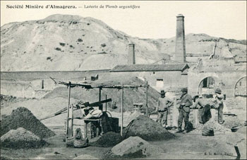 Explotación minera en Sierra Almagrera, en el oriente de la provincia de Almería, y membrete de factura de 1868 de la fábrica de cerámica de la Cartuja de Sevilla. Las actividades extractivas, que cobran auge primero en Almería y más avanzado el siglo XIX en Sierra Morena, desde Jaén y Córdoba a Huelva, y las iniciativas de industrialización que se emprenden en ciudades como Málaga, Sevilla o Cádiz son dos de los sectores fundamentales en los que se apoya en ciclo de la economía andaluza decimonónica. Un período en que la región mantiene unas posiciones relativas que no se distancian demasiado de la media nacional, aunque con una persistente tendencia a la baja que se acentúa al final de la centuria.