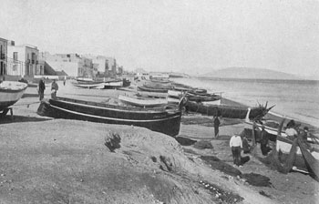 Dos ejemplos de puertos pesqueros de Andalucía a comienzos del siglo XX. Por un lado, el puerto de Huelva, representativo de los puertos del Atlántico que en el transcurso del siglo se convertirán, con mucha diferencia, en los más importantes de la región por su volumen de capturas y flotas. Por otro, una imagen de Garrucha, en el Levante de Almería, representativo a su vez de los puertos pesqueros de la Andalucía mediterránea, de inferiores capturas, más reducidos de tamaño y flotas, y también más dispersos y numerosos.