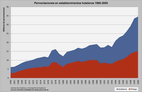 Fuentes: Pellejero Martínez, C. Estadísticas históricas sobre el turismo en Andalucía. Siglo XX. Instituto de Estadística de Andalucía, Sevilla, 2006.
