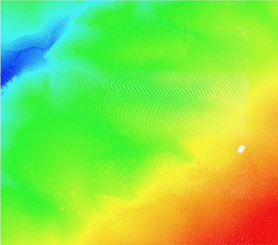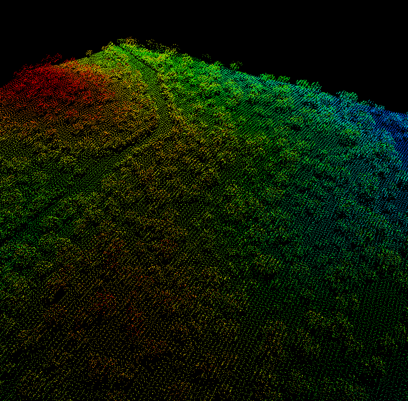 Nubes de puntos de cobertura LiDAR. Ejemplo de visualización por rangos de altura de los puntos: