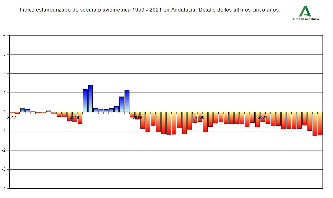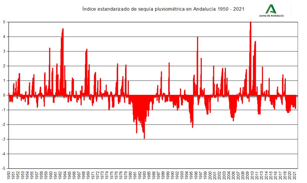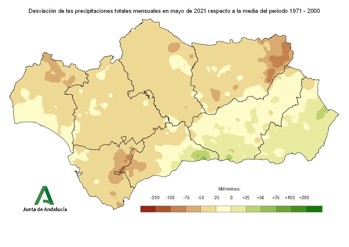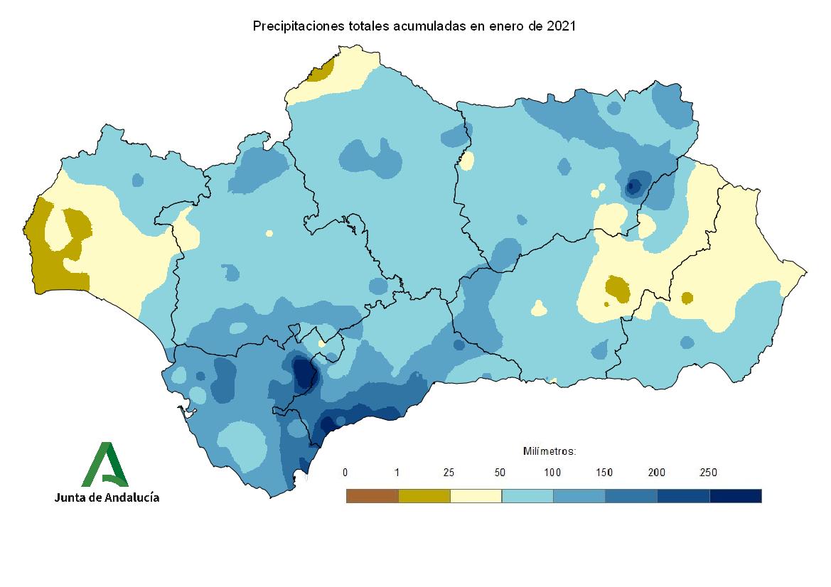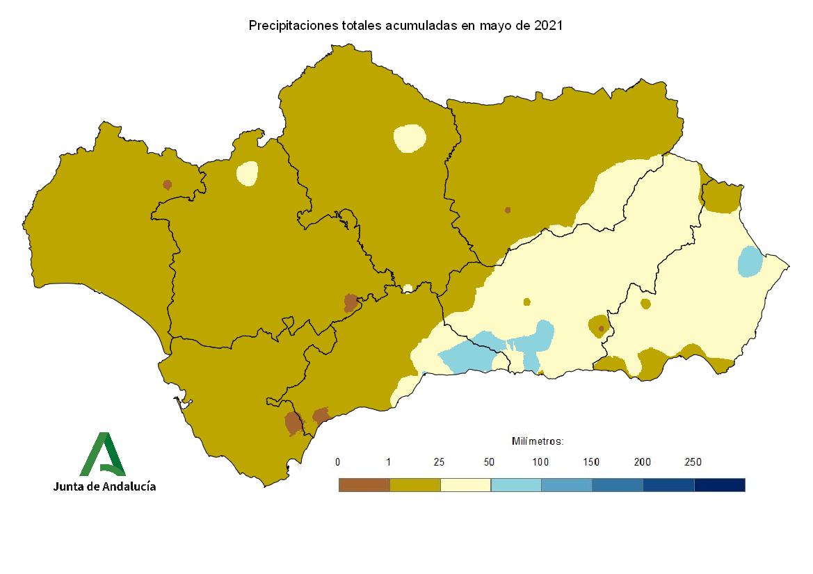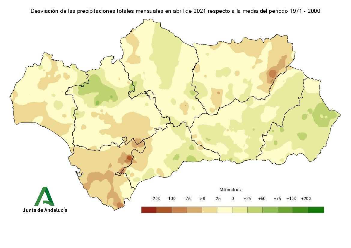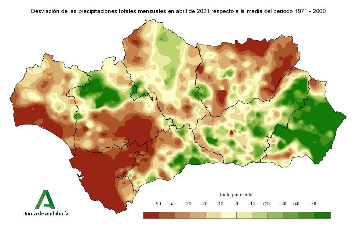 Datos climáticos mensuales sobre precipitación, temperatura y sequía en Andalucía, durante 2021