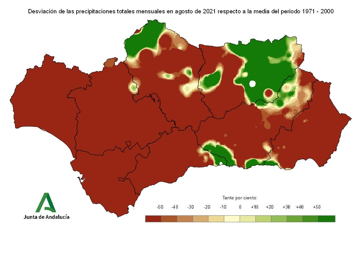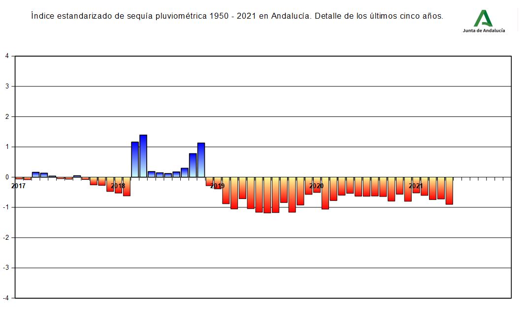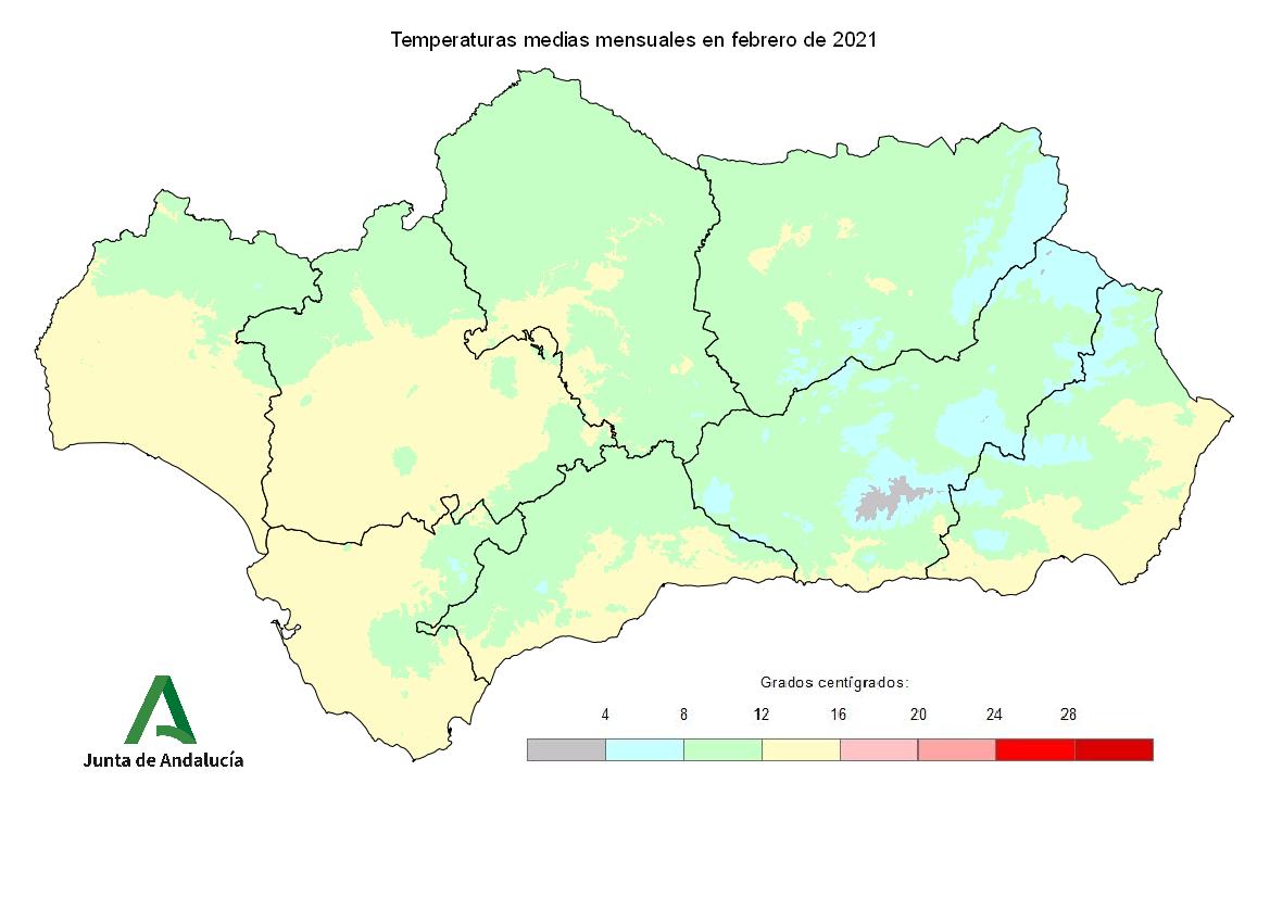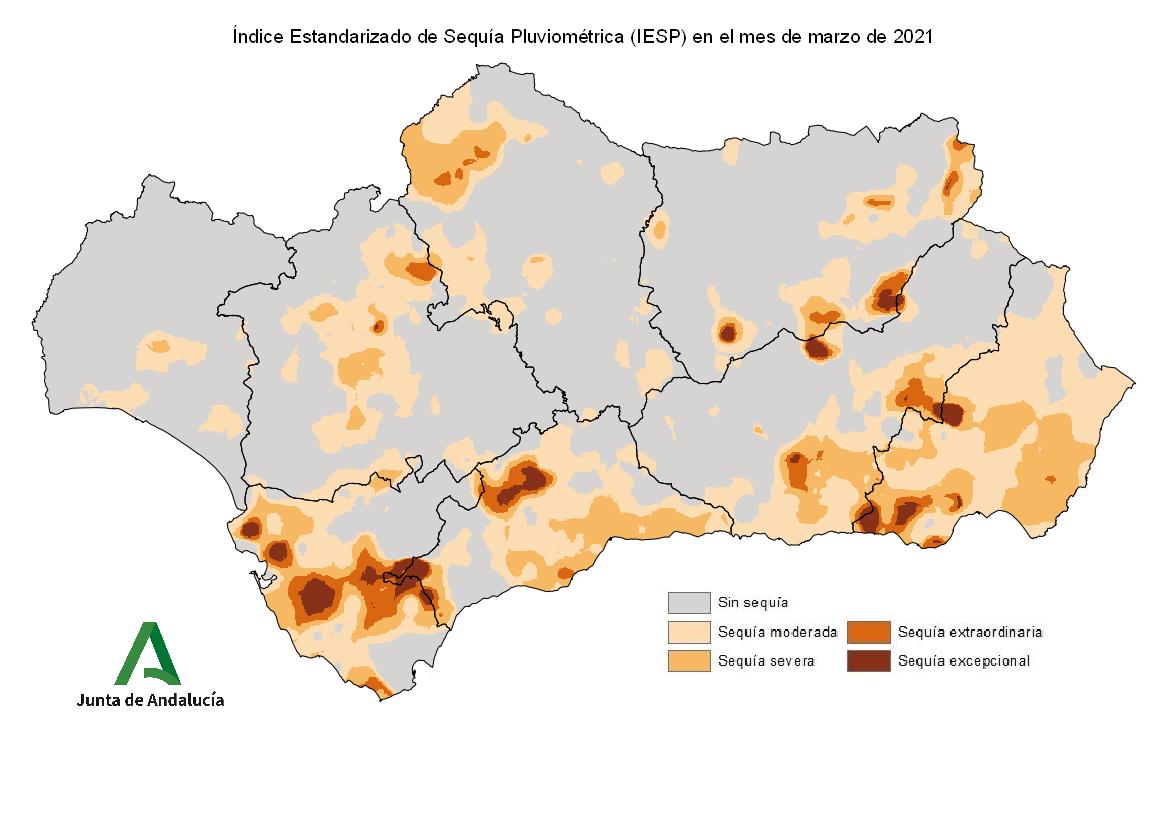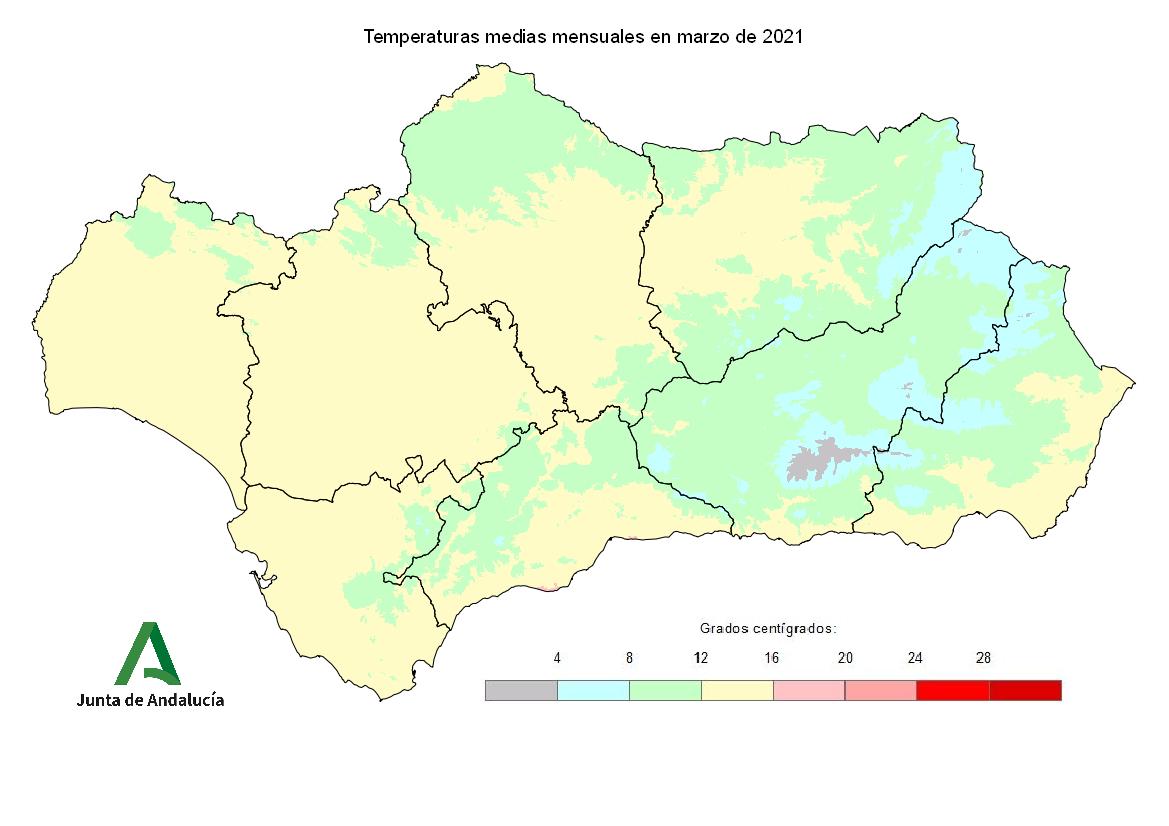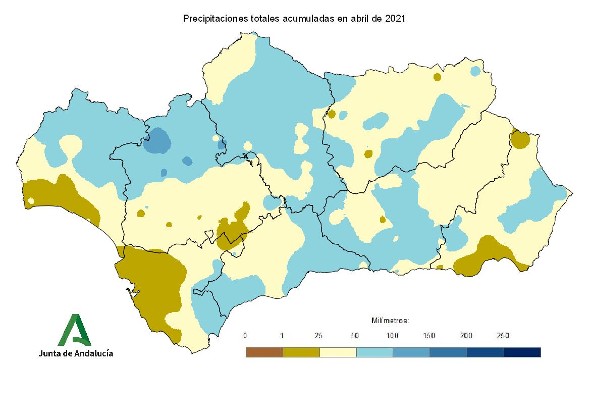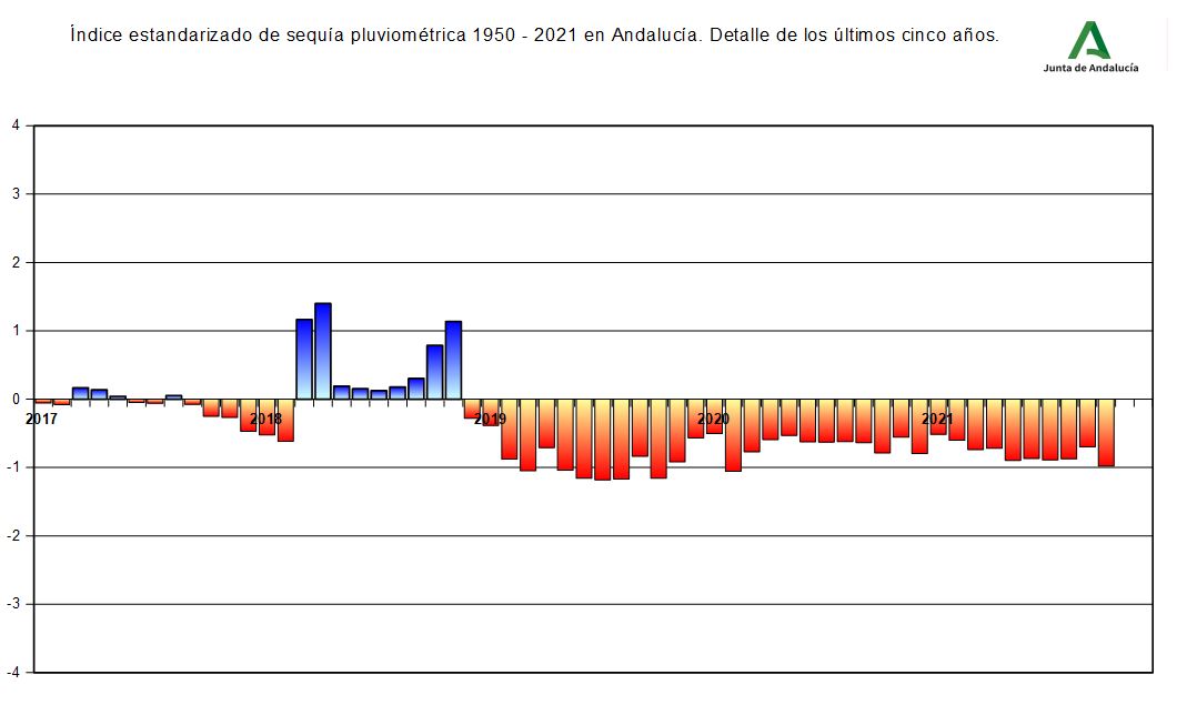 Datos climáticos mensuales sobre precipitación, temperatura y sequía en Andalucía, durante 2021