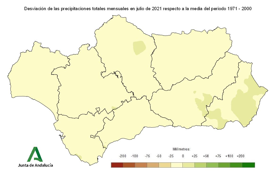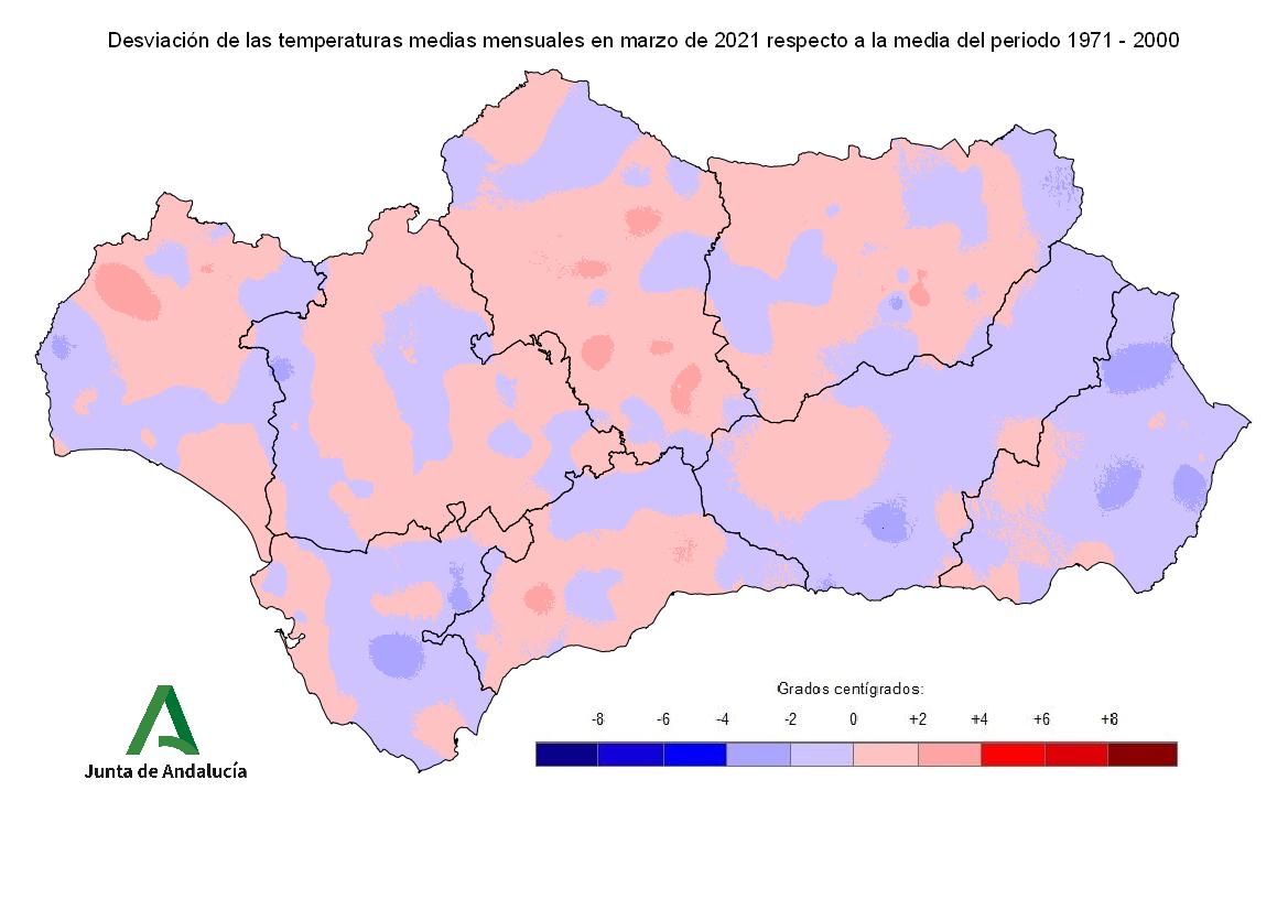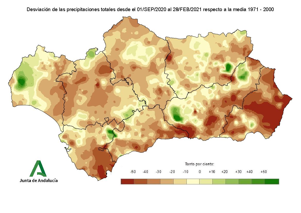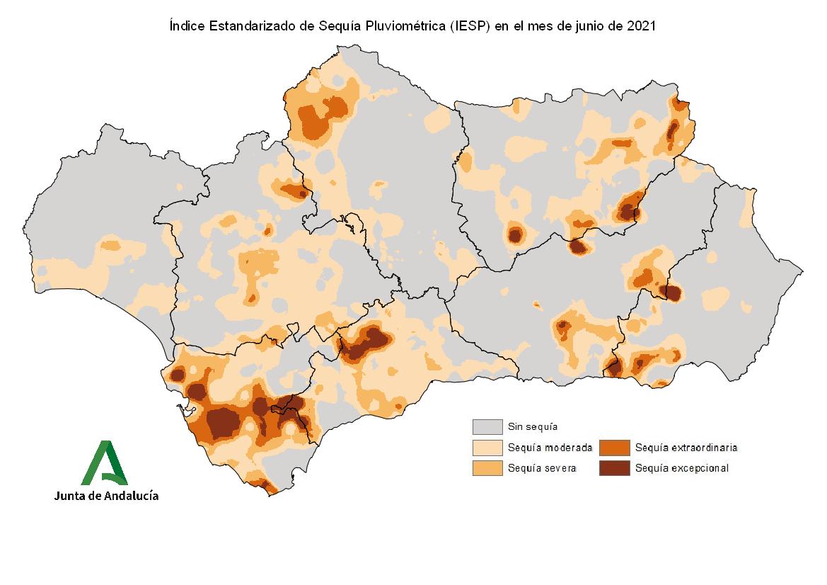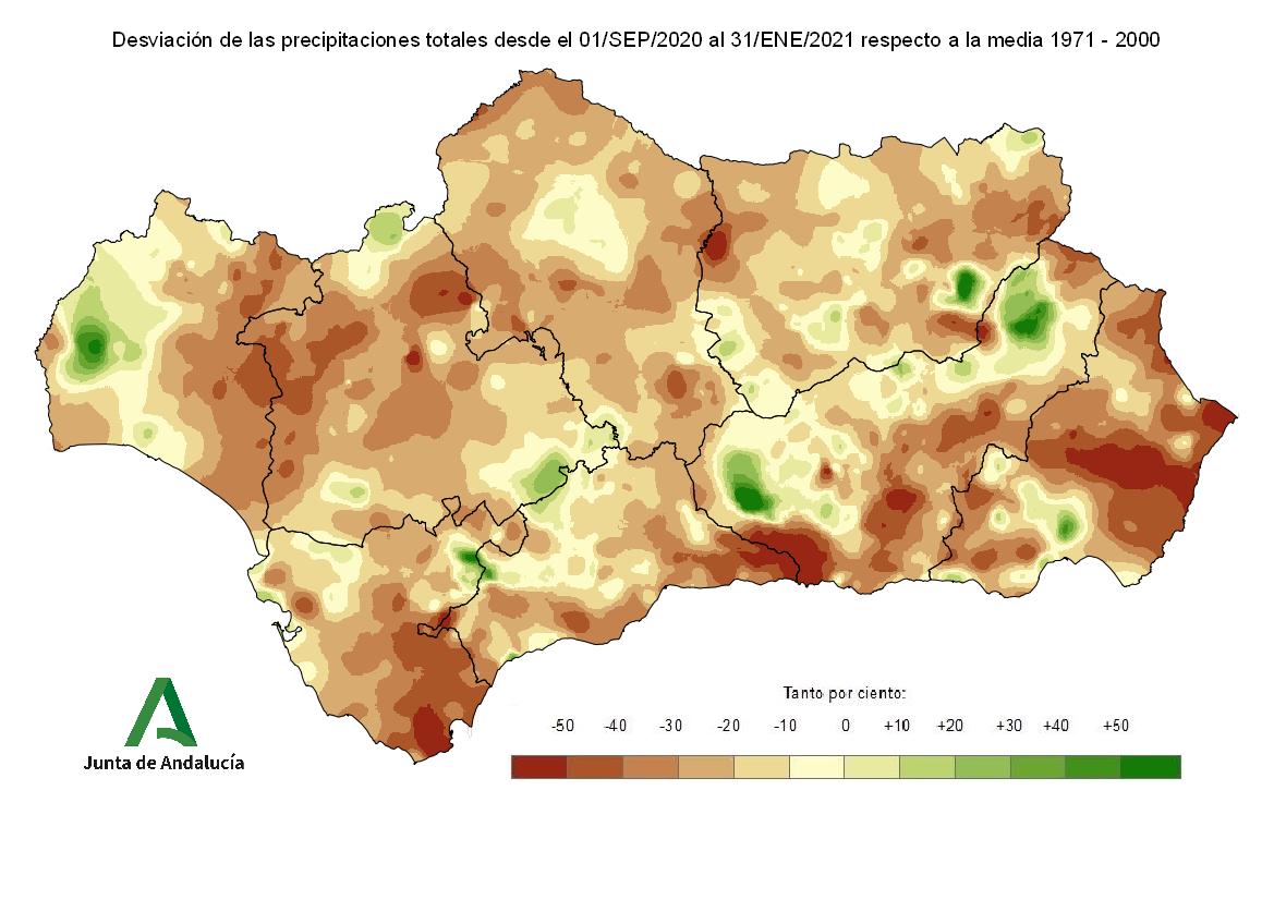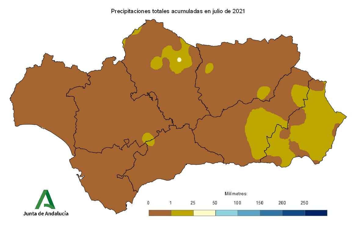 Datos climáticos mensuales sobre precipitación, temperatura y sequía en Andalucía, durante 2021