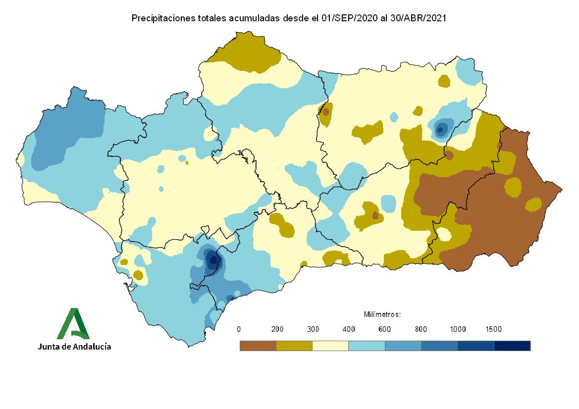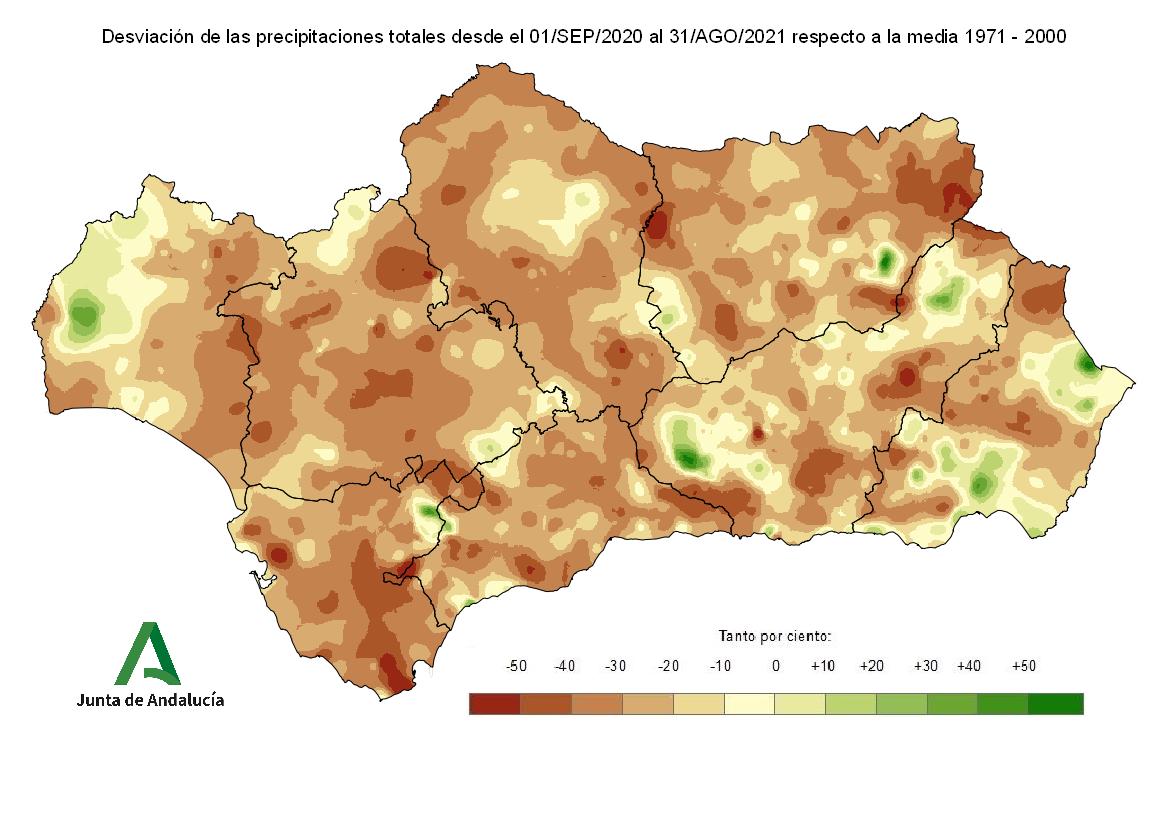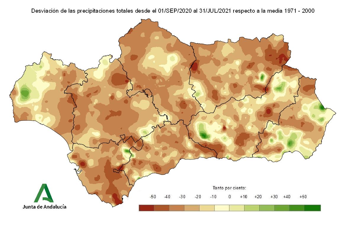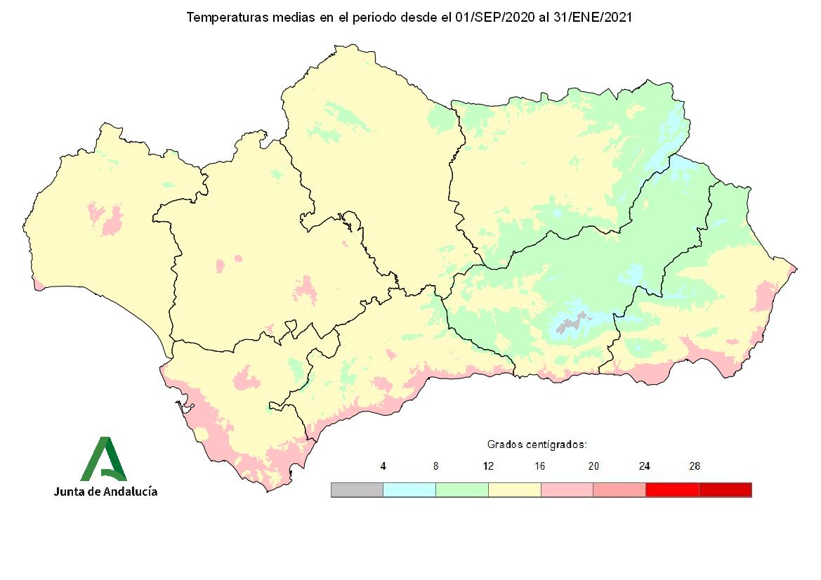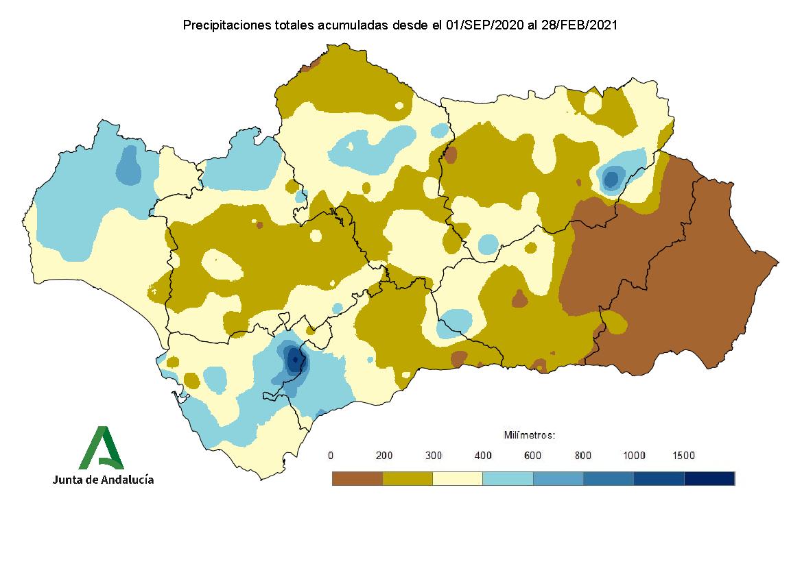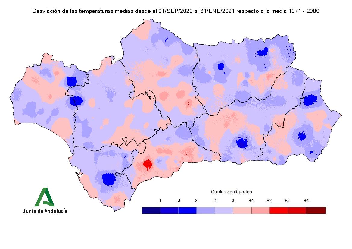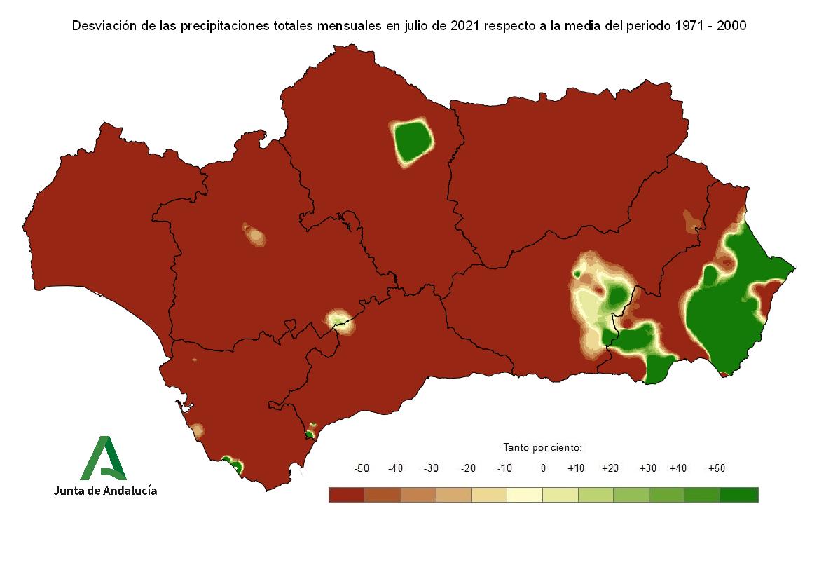 Datos climáticos mensuales sobre precipitación, temperatura y sequía en Andalucía, durante 2021