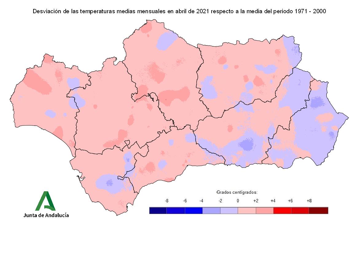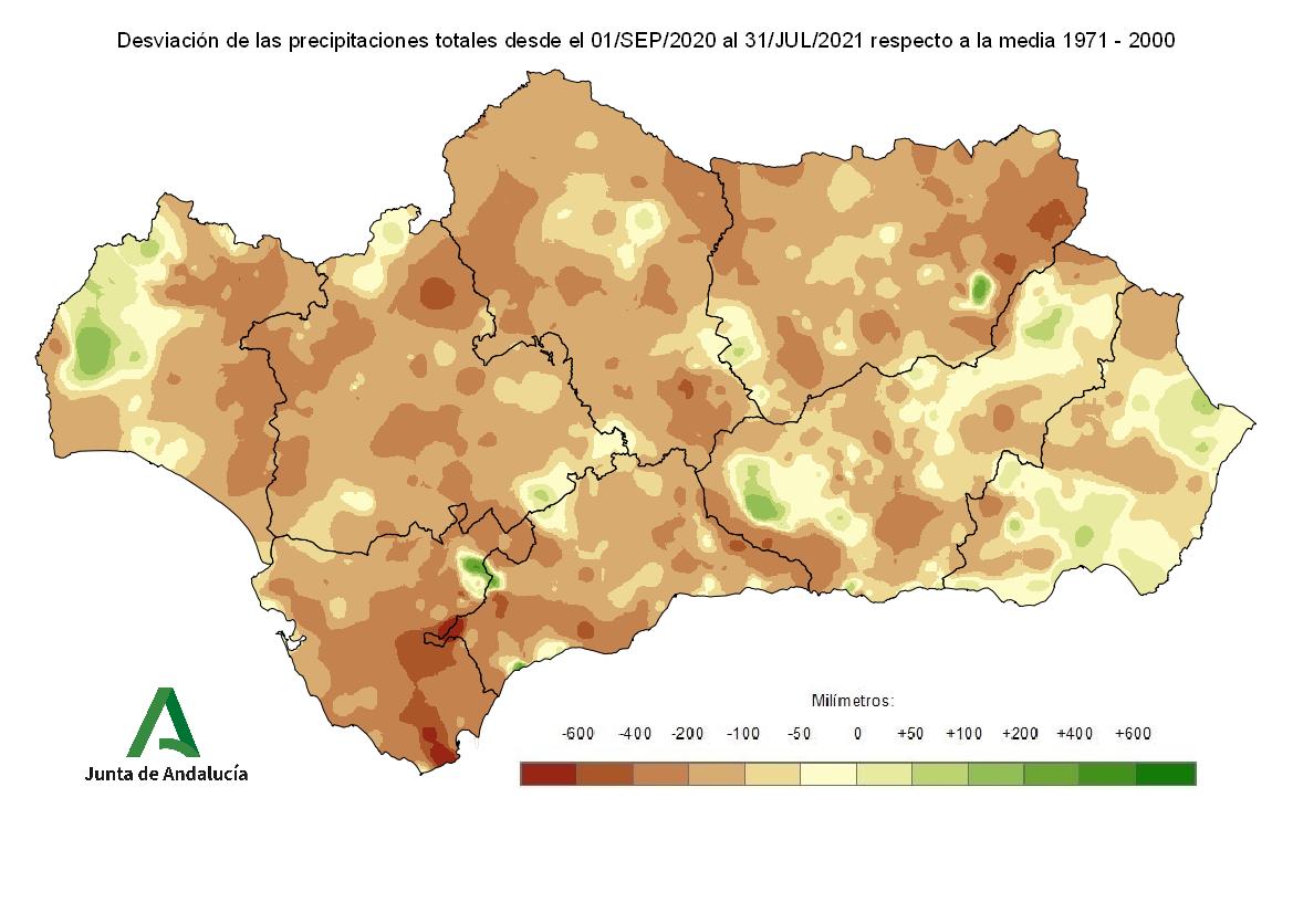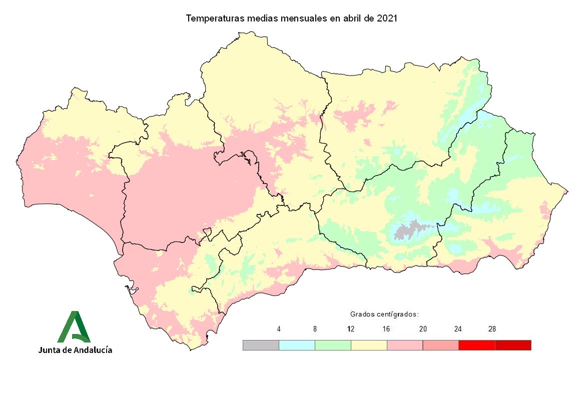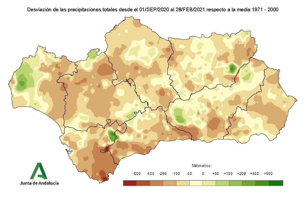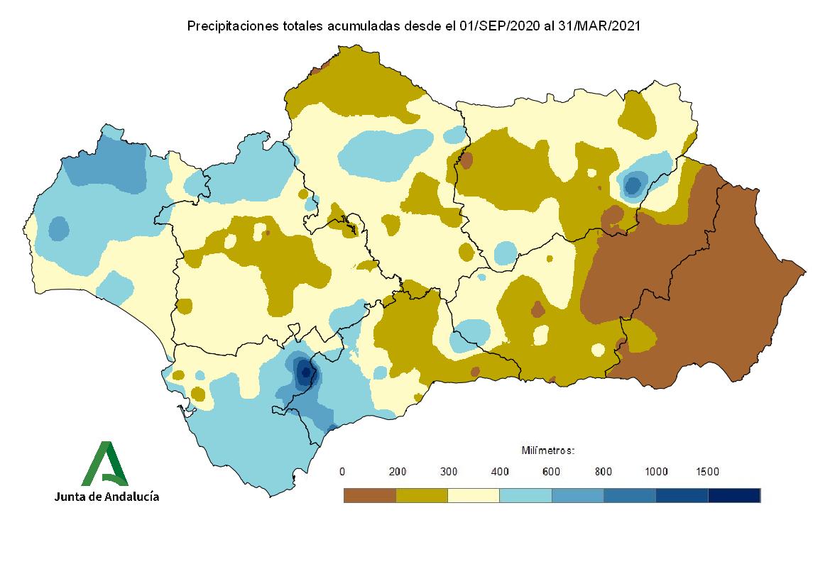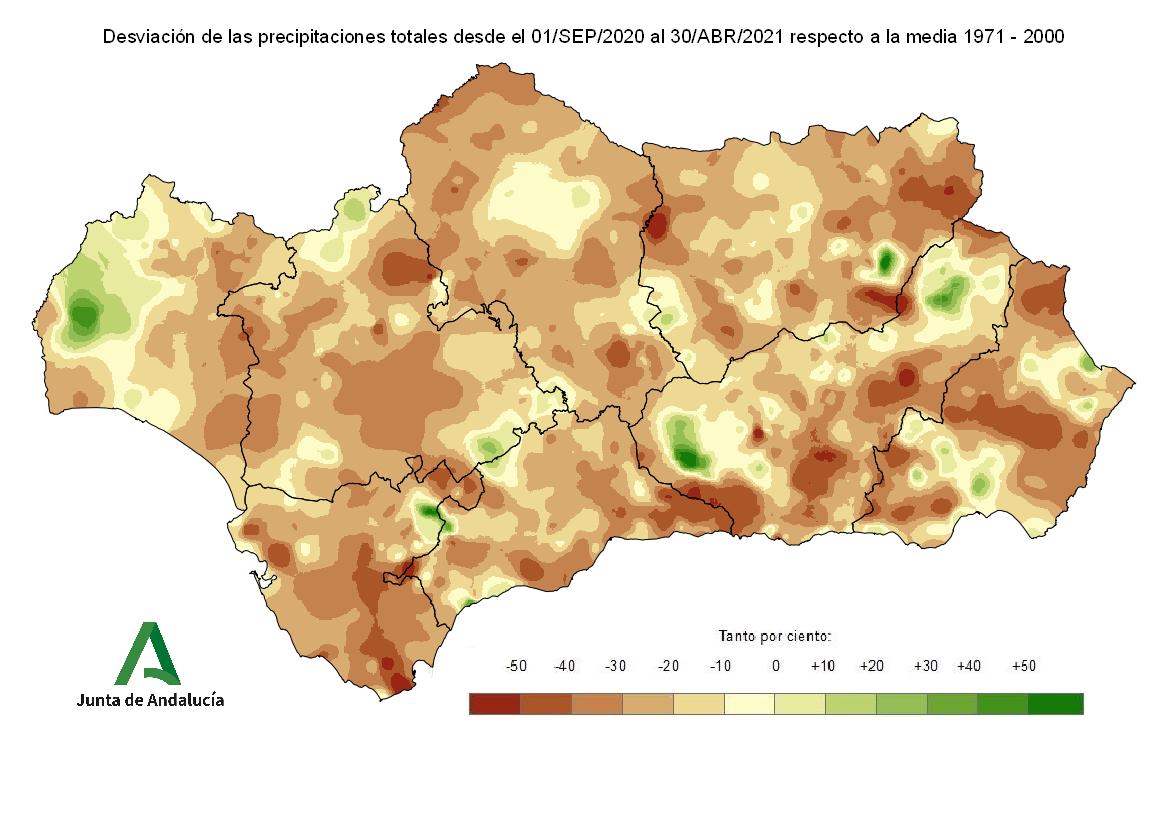 Datos climáticos mensuales sobre precipitación, temperatura y sequía en Andalucía, durante 2021