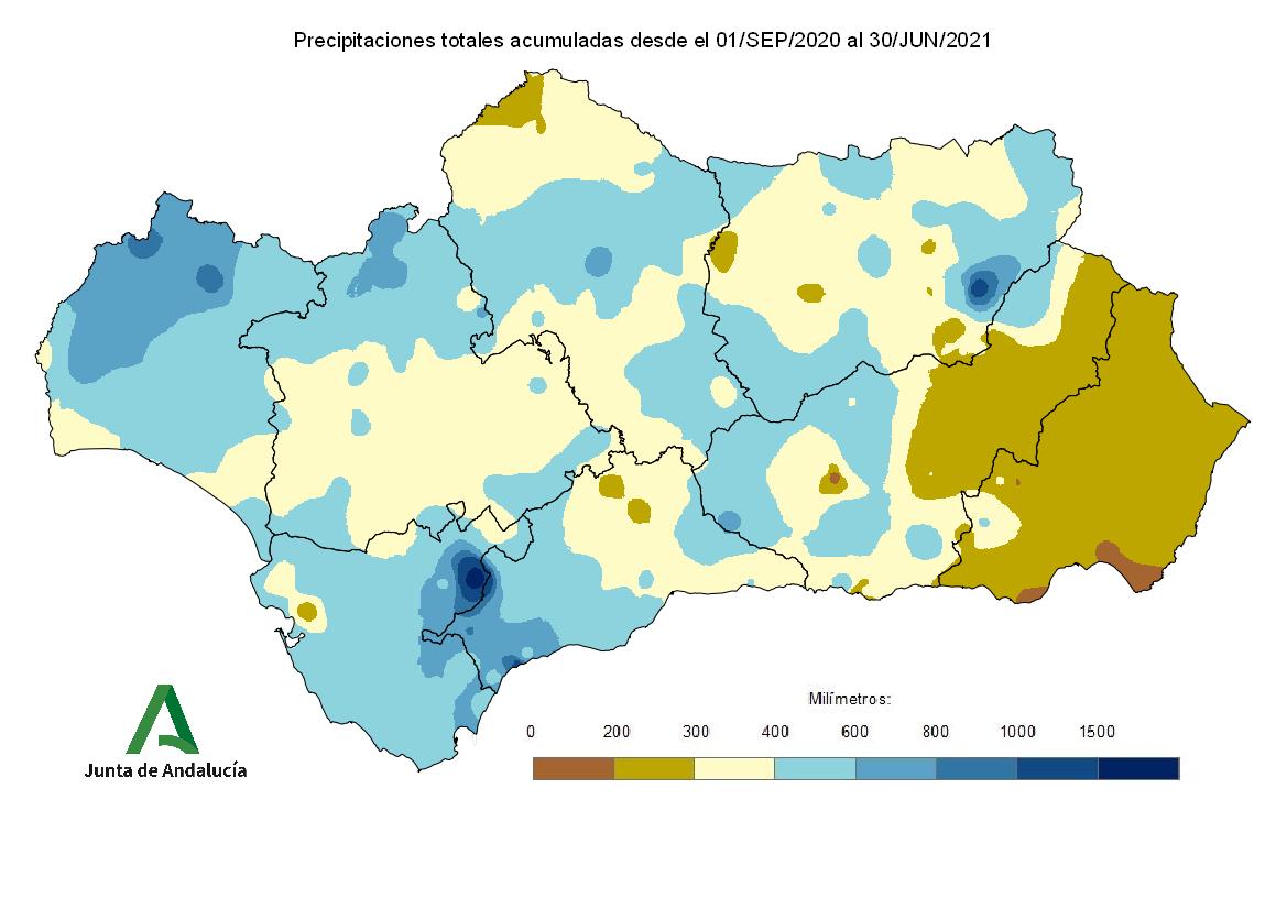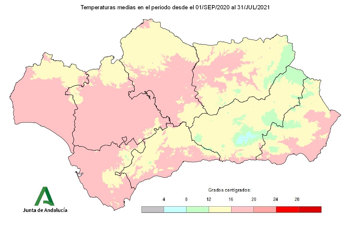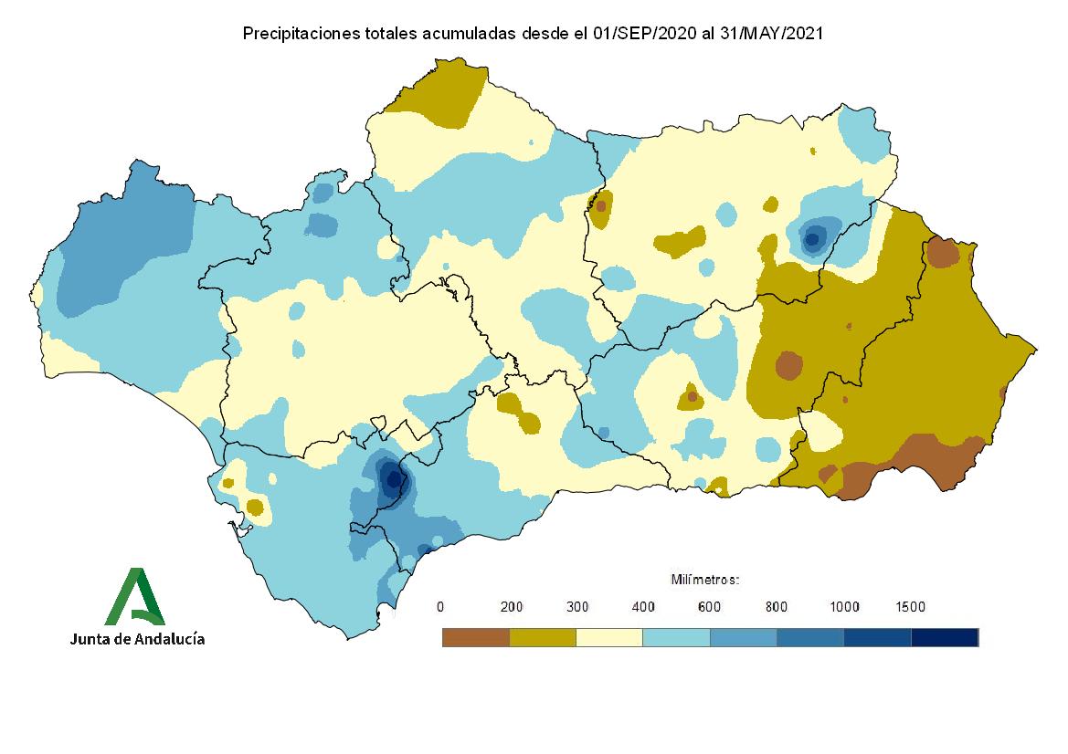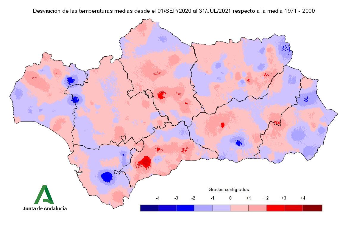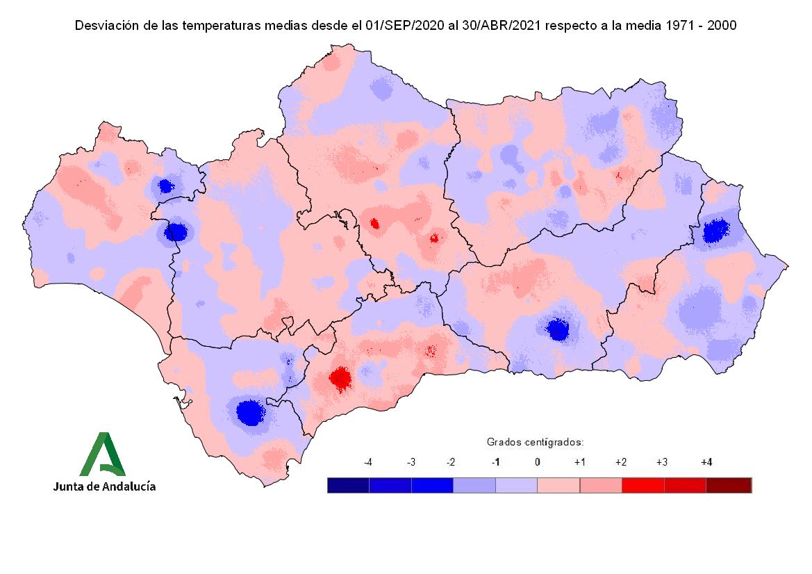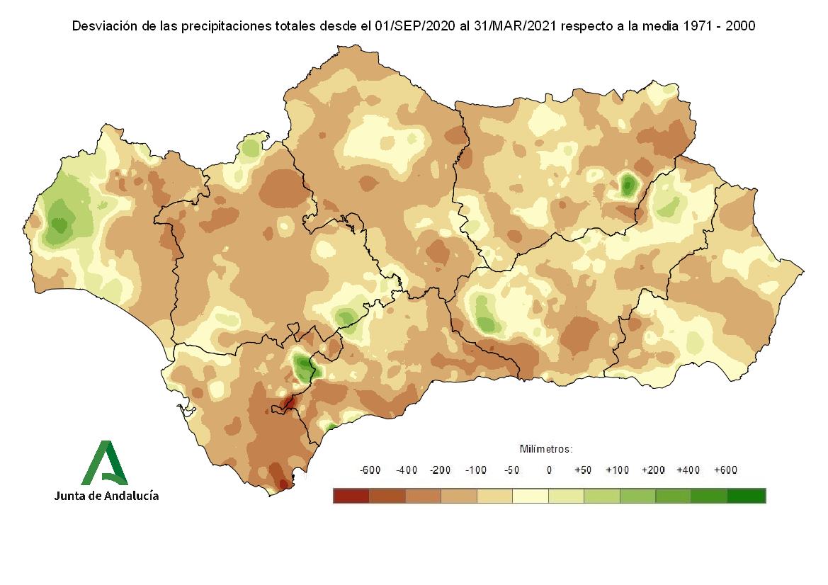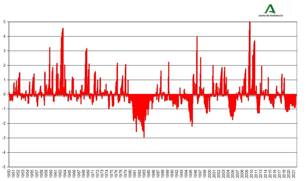 Datos climáticos mensuales sobre precipitación, temperatura y sequía en Andalucía, durante 2021