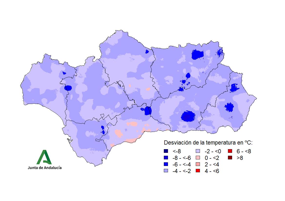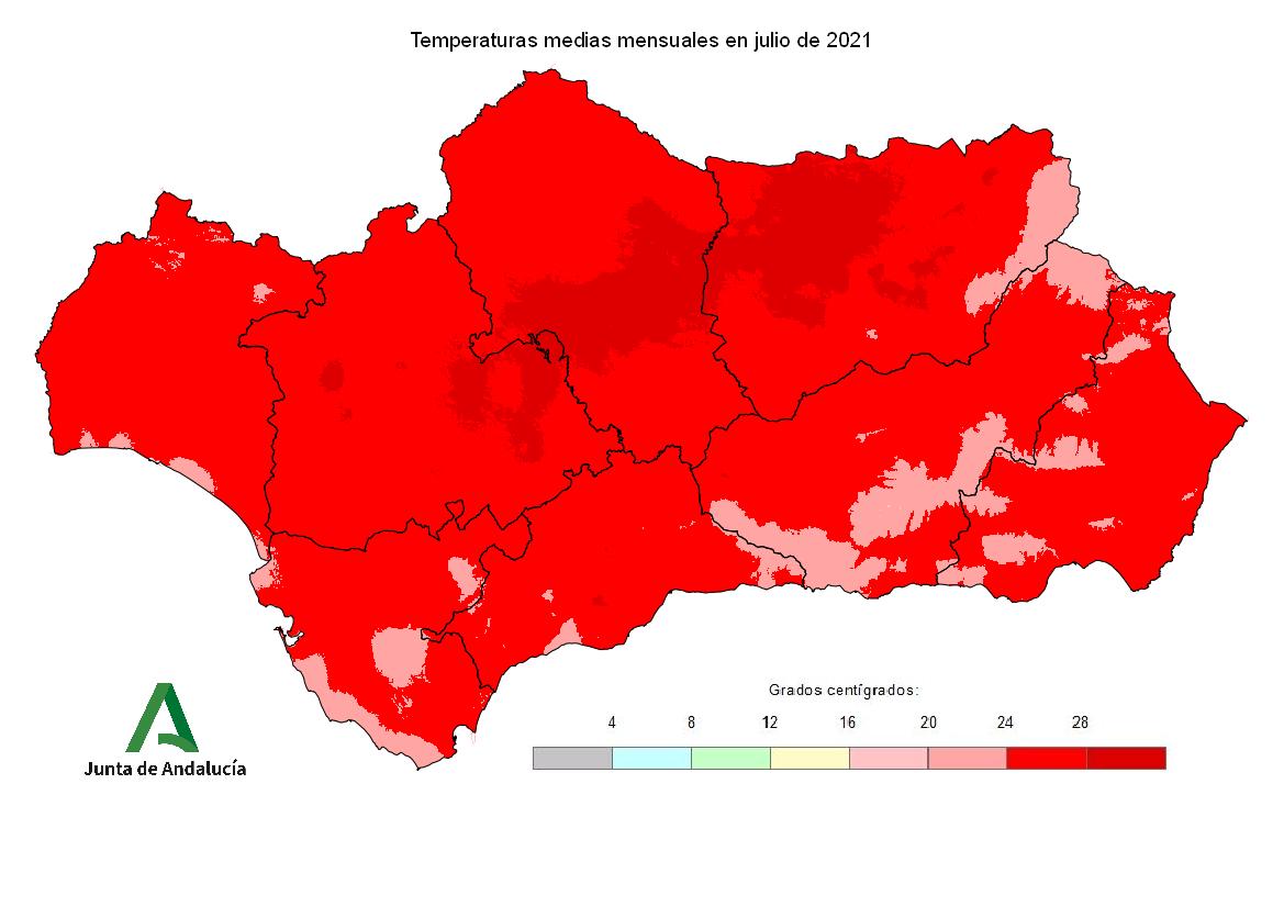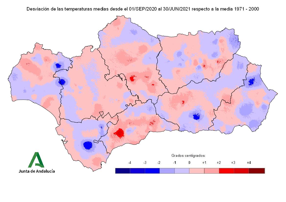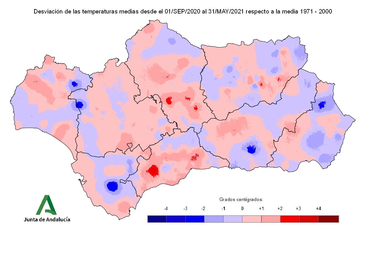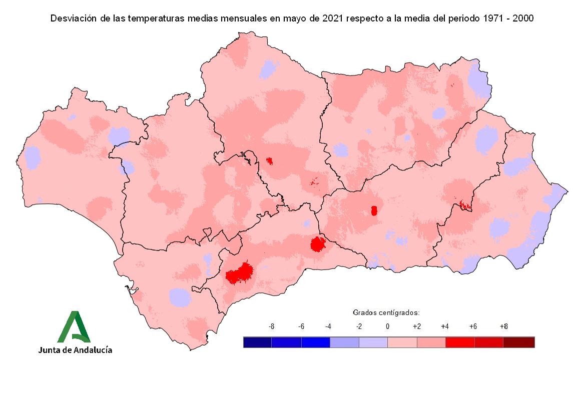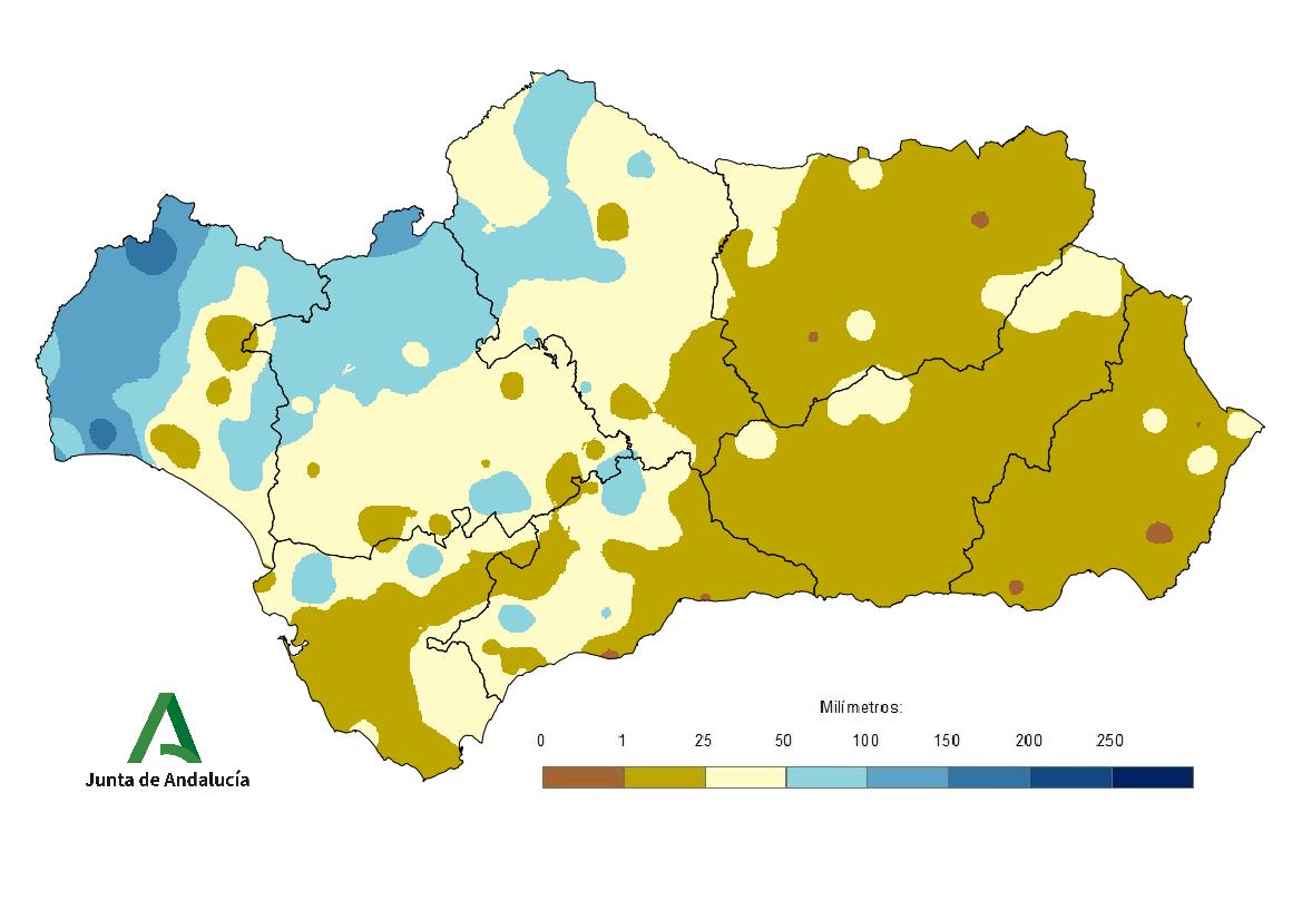 Datos climáticos mensuales sobre precipitación, temperatura y sequía en Andalucía, durante 2021