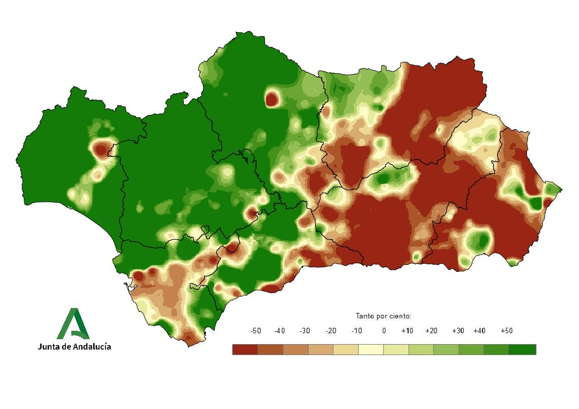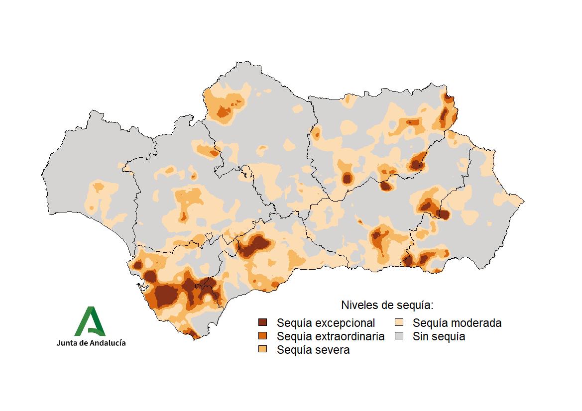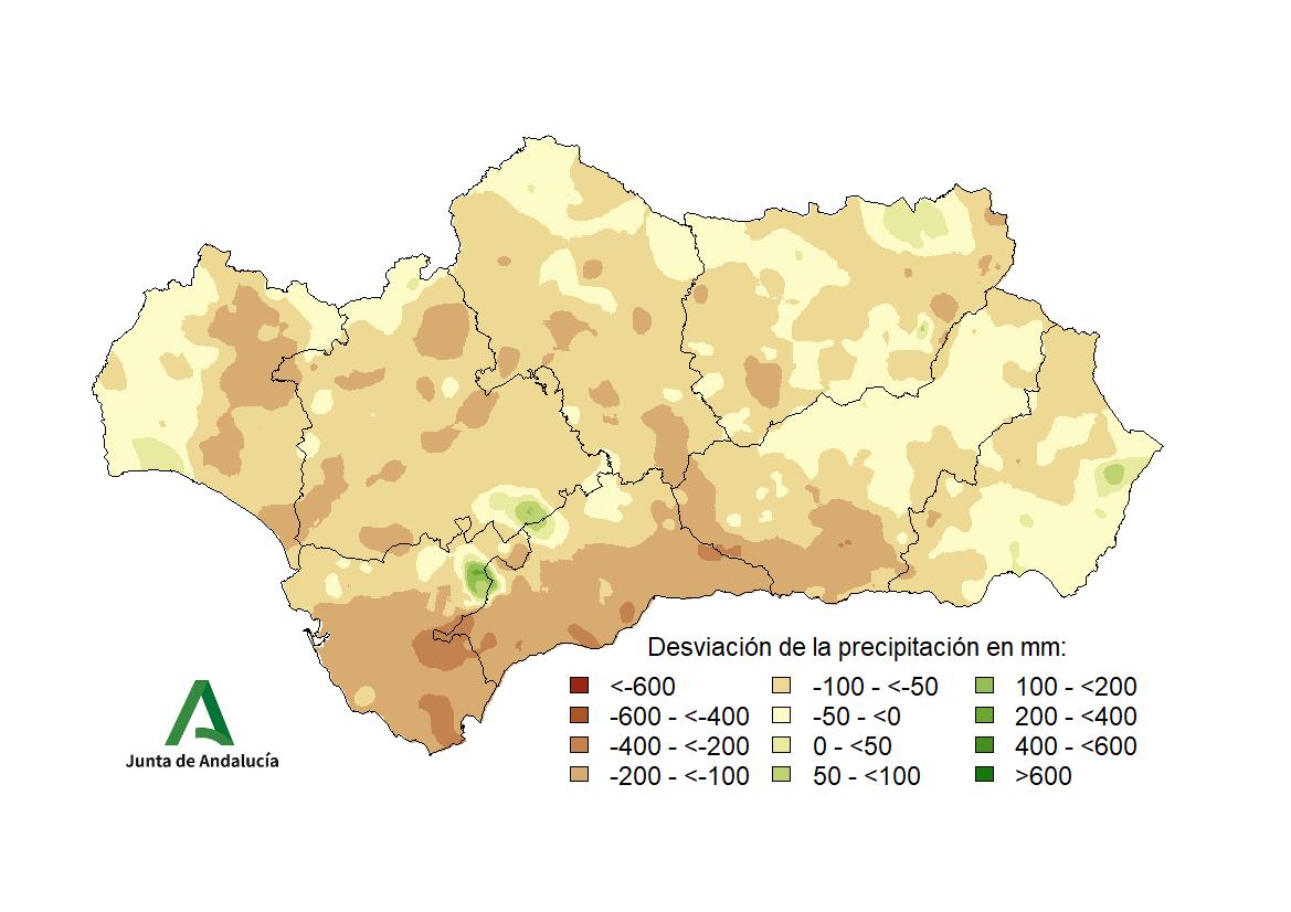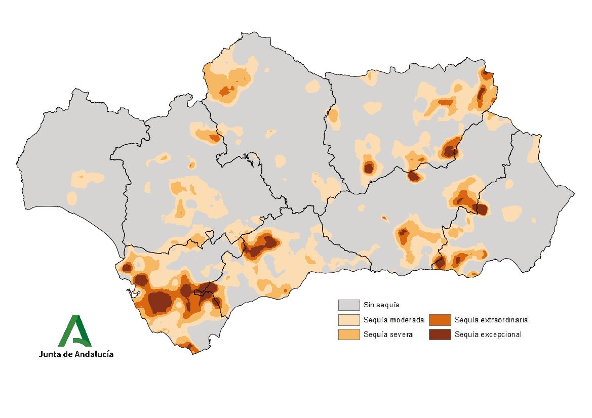- El indicador “Intensidad de la sequía pluviométrica” evalúa el tiempo durante el cual un área sufre déficit pluviométrico, identificándose éste cuando la precipitación acumulada en el periodo evaluado haya sido inferior a la media de referencia del periodo 1971 - 2000. De esta forma las intensidades leves o moderadas señalan un déficit pluviométrico coyuntural, registrado en los 6 o los 12 meses previos a la elaboración del indicador. Los niveles superiores identifican periodos deficitarios en precipitación acumulada respecto a los 24, 36 o 48 meses previos, permitiendo identificar las áreas en las que la sequía pluviométrica está siendo más prolongada y cuyo efectos negativos pueden ser mayores.