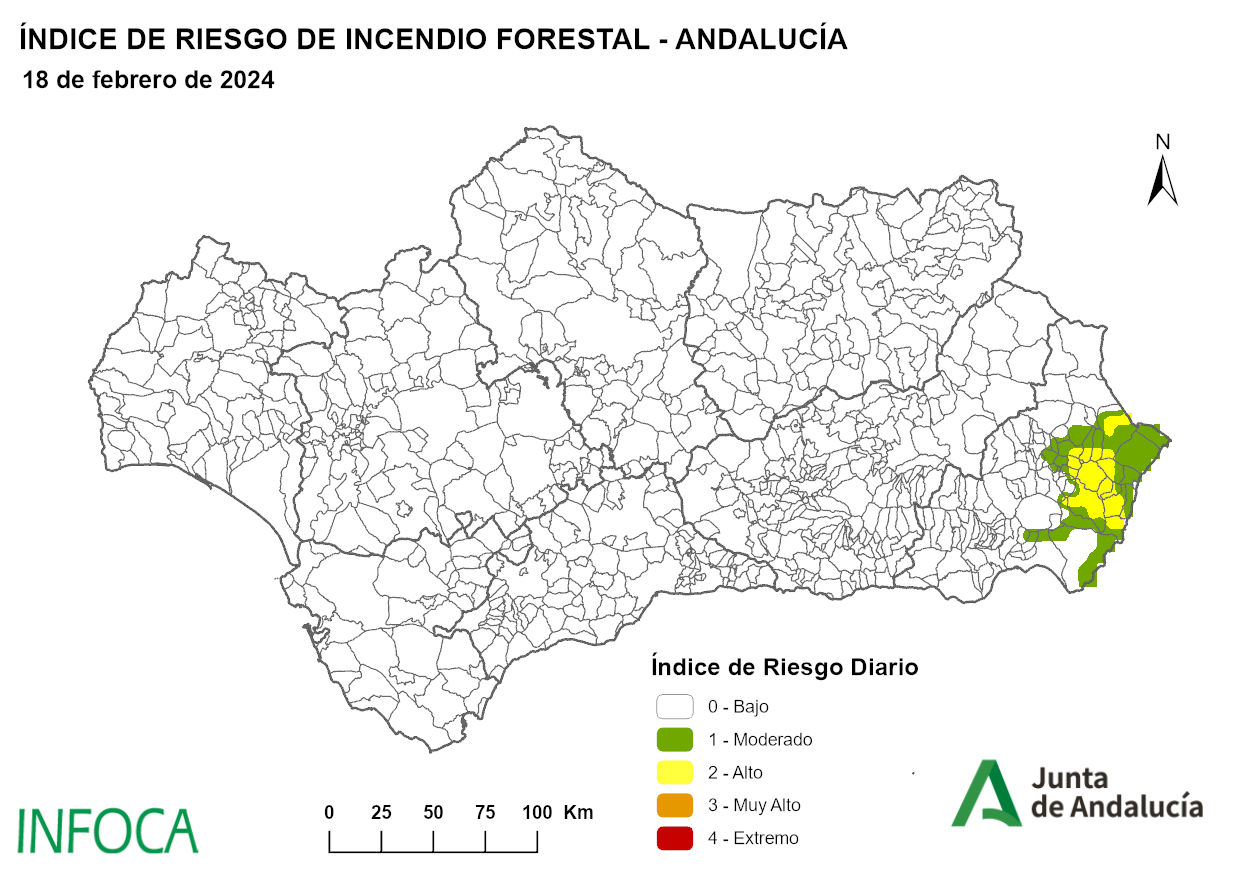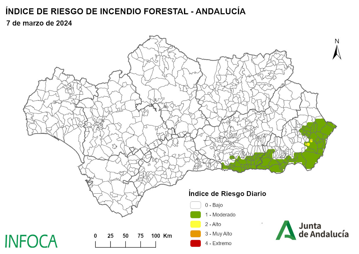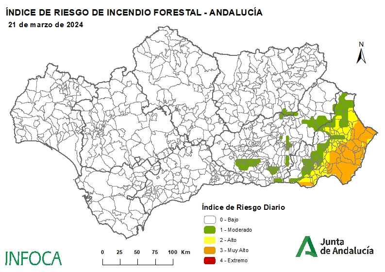 Descarga los mapas con la previsión del índice de riego de incendio forestal en la comunidad aútonoma andaluza, a partir de los días señalados a continuación, durante el mes de marzo: