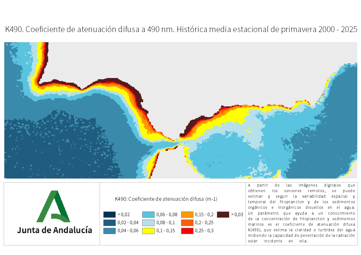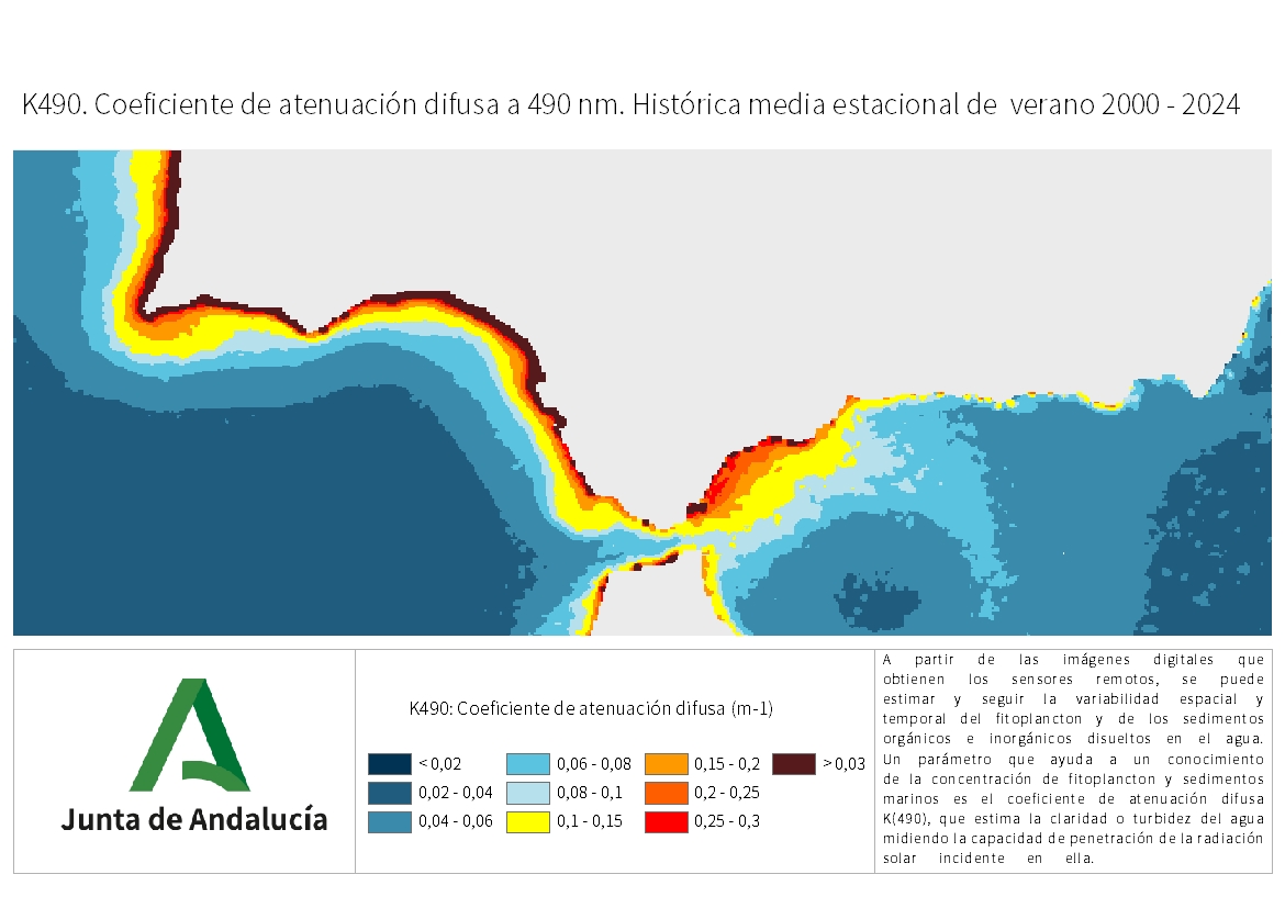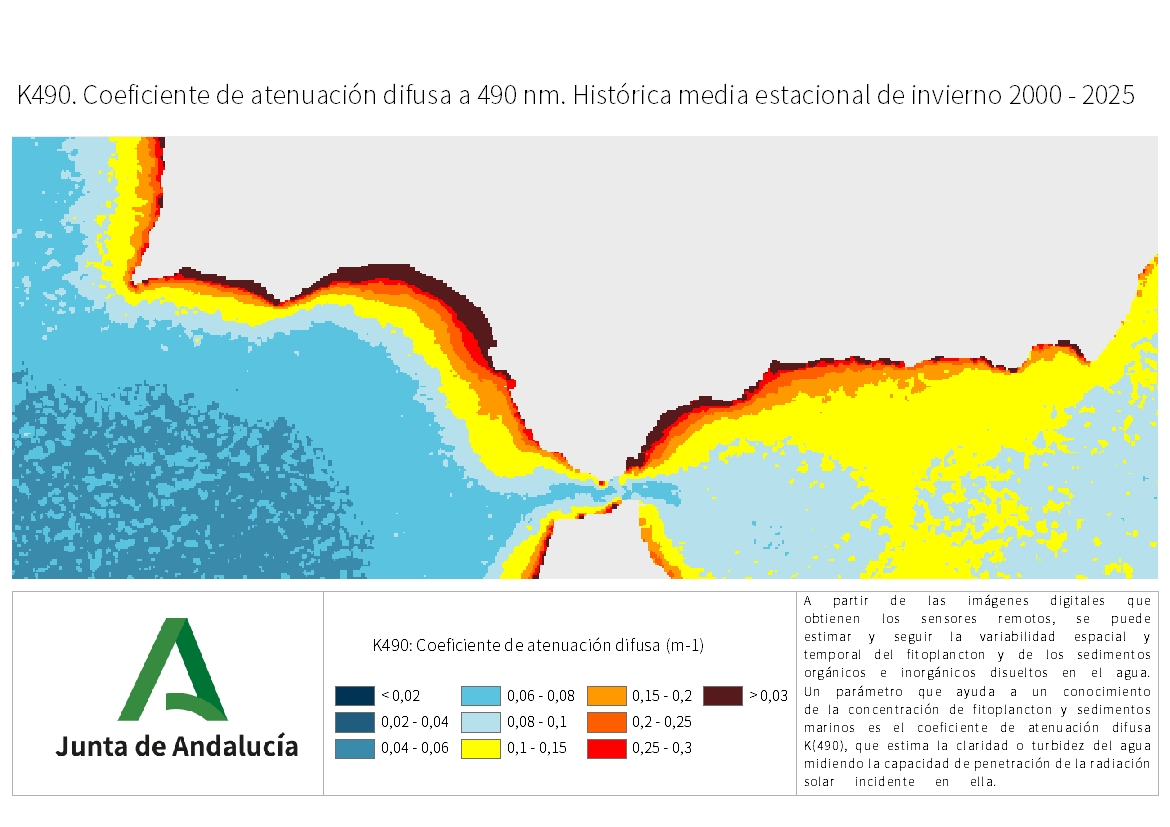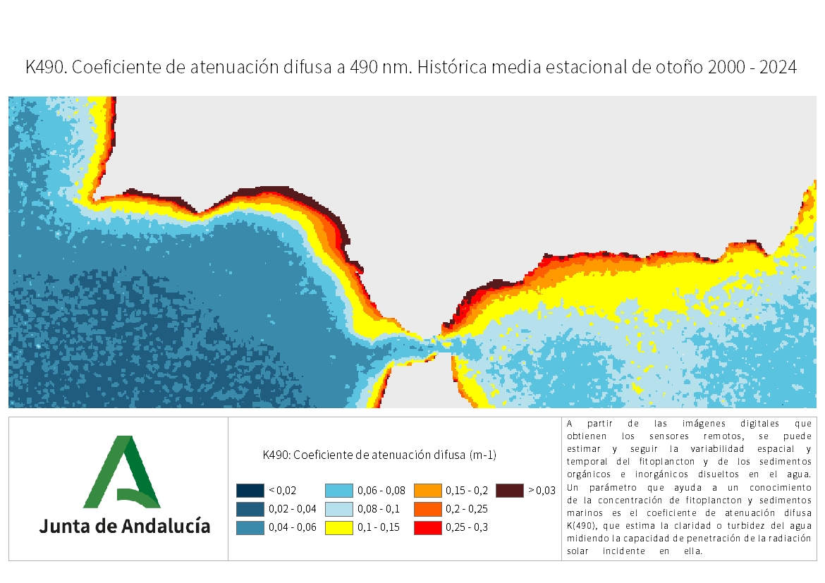 Para el análisis estacional de la variación del coeficiente de atenuación difusa, se realizan cálculos de dos formas diferentes: por un lado, la situación media del K490 durante la estación; y por otro, los valores medios del comportamiento de este parámetro en los meses de la estación a lo largo de la serie histórica registrada desde 2000 a la actualidad.