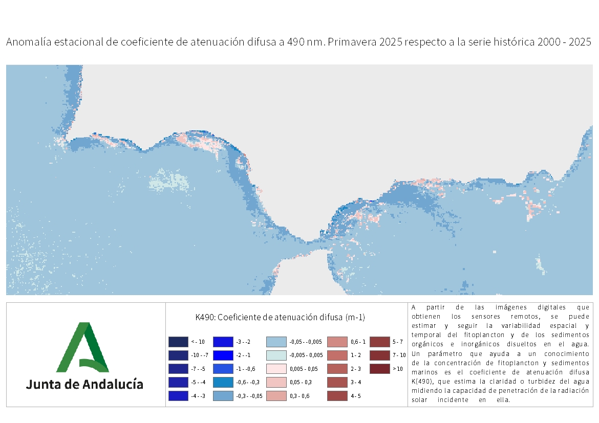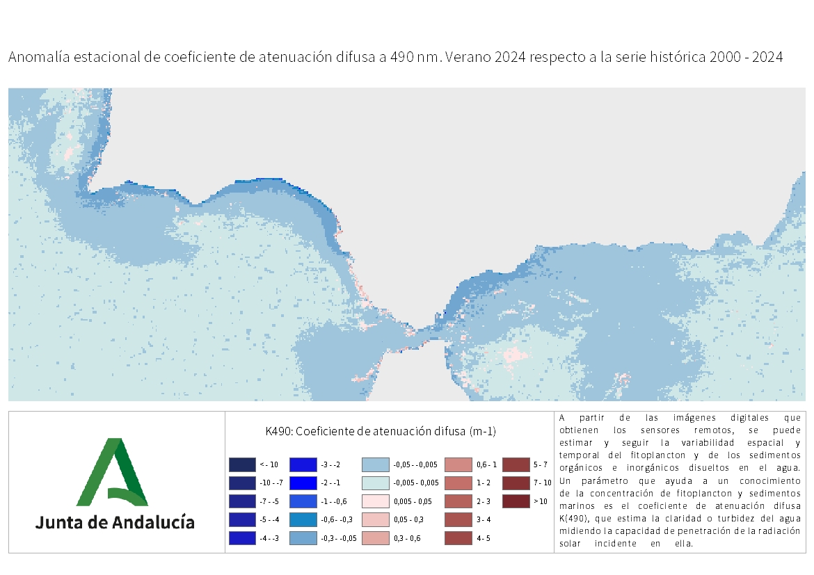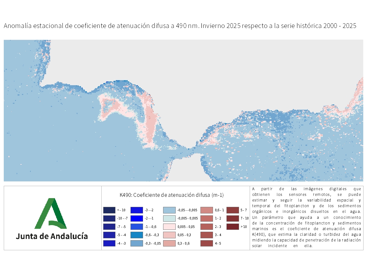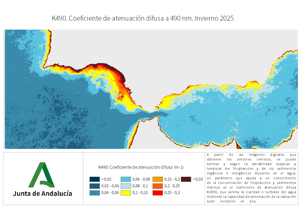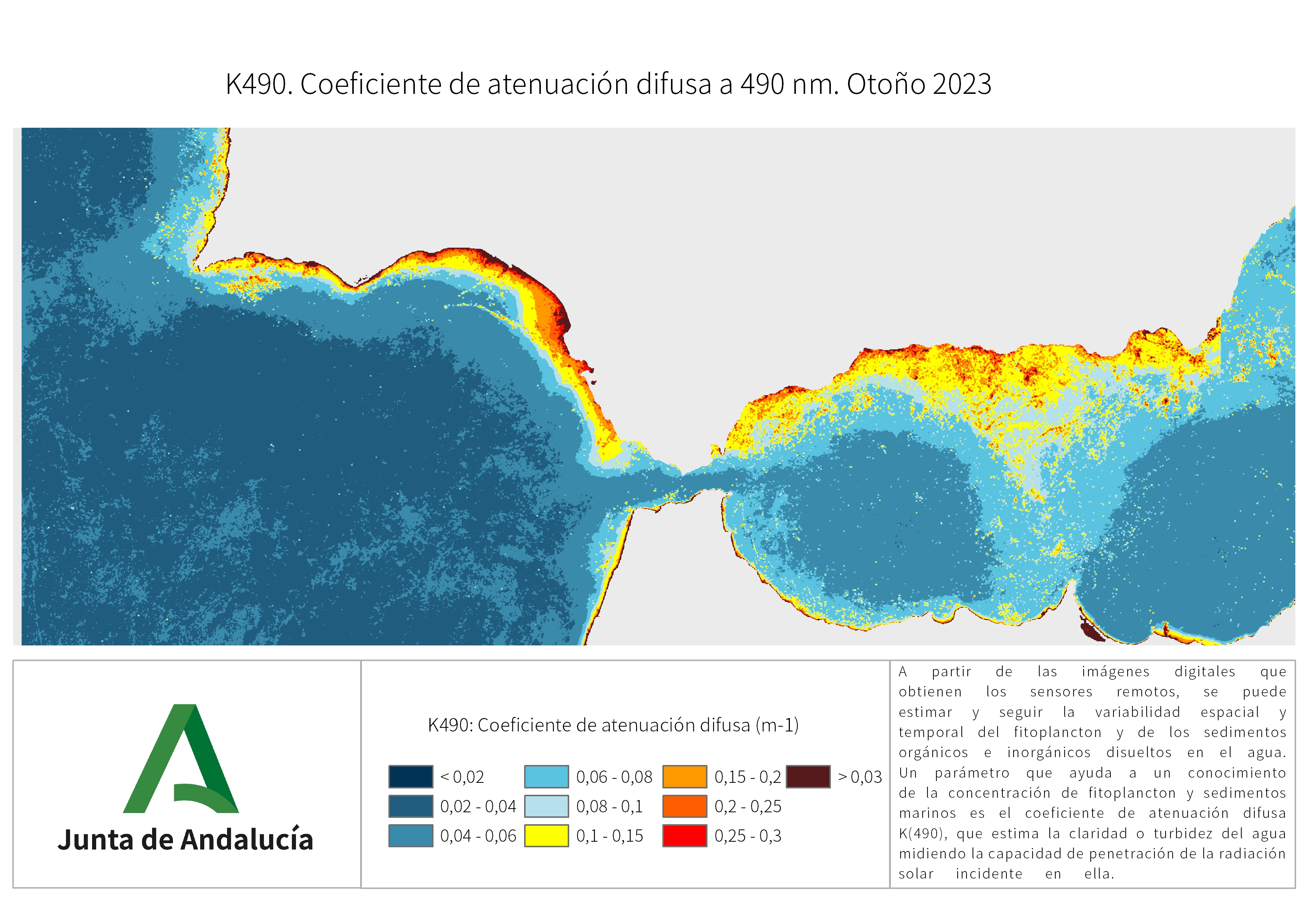 Para el análisis estacional de la variación del coeficiente de atenuación difusa, se realizan cálculos de dos formas diferentes: por un lado, la situación media del K490 durante la estación; y por otro, los valores medios del comportamiento de este parámetro en los meses de la estación a lo largo de la serie histórica registrada desde 2000 a la actualidad.