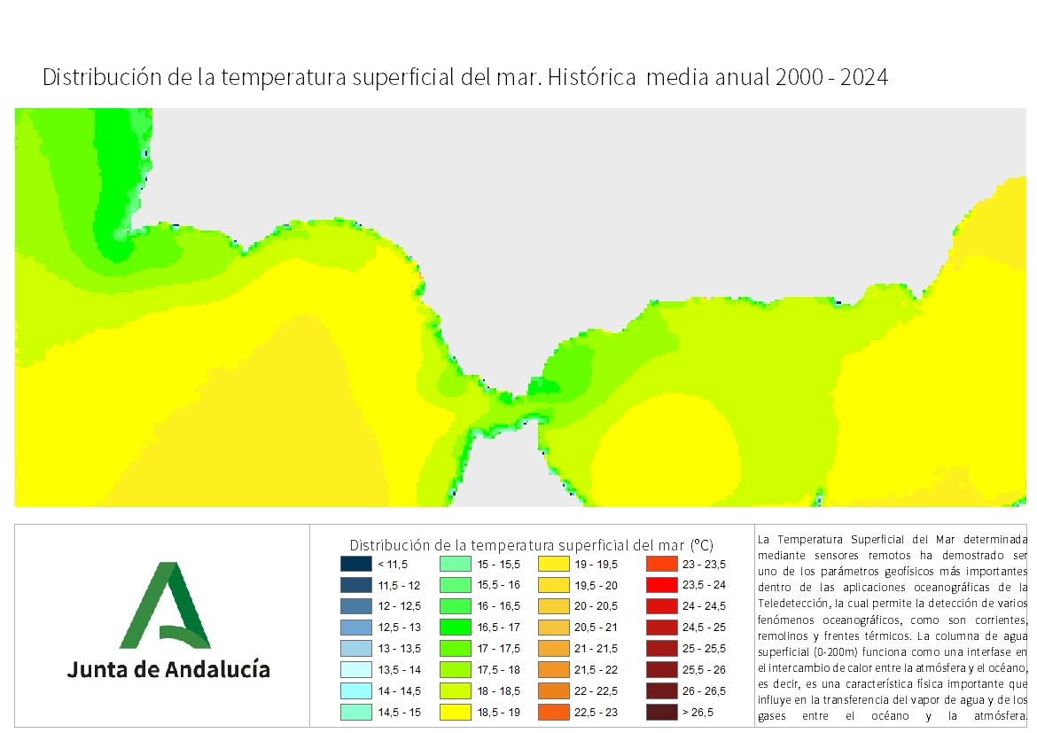 Para el estudio de las variaciones anuales de la temperatura superficial del mar se realizan cálculos de dos formas diferentes: por un lado, la situación media de SST durante el año; y por otro, los valores medios anuales a lo largo de la serie histórica registrada desde 2000 a la actualidad.