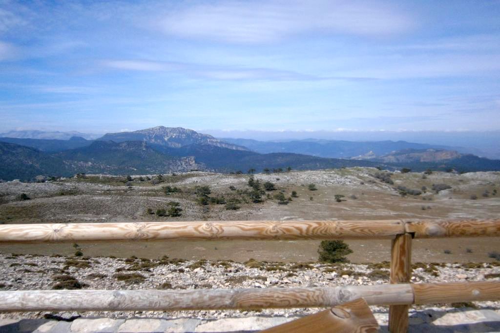 Desde él se tiene una vista panorámica muy completa de un tipo de formación geológica característica de terrenos calcáreos, un polge, de pequeñas dimensiones en este caso, y en el que las aguas de lluvia alimentan un riachuelo estacional que vierte sus aguas directamente a un sumidero, al interior de la montaña.