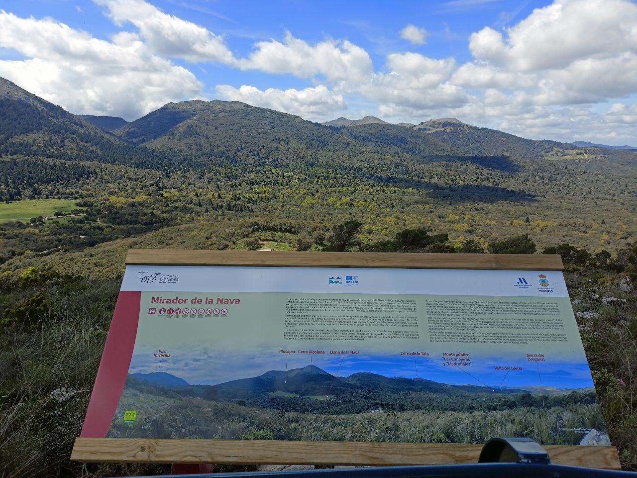 The viewpoint is located on the Montes de Parauta public mountain, in the municipality of Parauta, near the private estate ‘La Nava de San Luis’. Situated on a paved platform and bordered by a low wall made of local stones, it allows visitors to enjoy one of the most beautiful panoramic views of the Sierra de las Nieves, from the highest peaks of the Sierra de las Nieves mountain range, passing through the La Nava plain, to the boundaries of the park in the Conejeras area, where one of the best-preserved holm oak forests in the area is located.