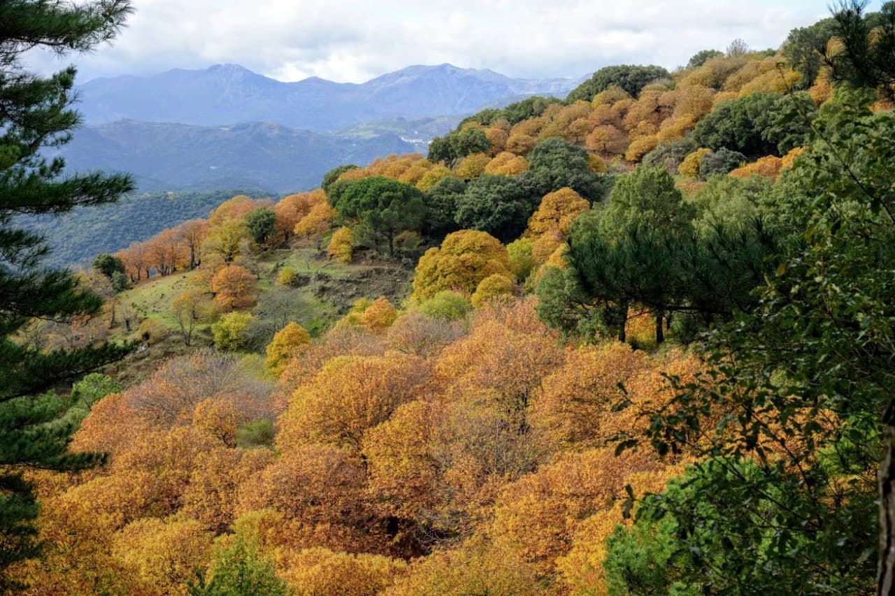 Existen varios hábitats de interés comunitario que hacen de esta Z.E.C. un territorio a tener en cuenta dentro de la red europea de espacios protegidos, al reconocerse algunos de ellos con carácter prioritario. Destacamos, por ejemplo, las formaciones de matorrales termomediterráneos del tipo lentiscares con espinos, originando un matorral alto y denso con abundancia de especies termófilas, así como las zonas subestépicas de gramíneas a base de pastizales con cobertura variable y constituidos por una gran diversidad de especies de plantas vivaces. Interesan igualmente las dehesas de quercíneas, con un estrato arbóreo compuesto principalmente por encinas, alcornoques, quejigos o acebuches que permiten el desarrollo de pastos para aprovechamientos ganaderos o cinegéticos, y mención especial ha de hacerse respecto de los bosques de castaño, procedentes de antiguas plantaciones o de regeneraciones naturales o seminaturales y que son probablemente el distintivo más popular y característico del Valle del Genal, sobre todo durante el otoño cuando amarillean sus hojas (junto con las de los quejigos) y se generan estampas de una espectacularidad sin igual. No te lo pierdas, será un regalo para la vista que nunca olvidarás.